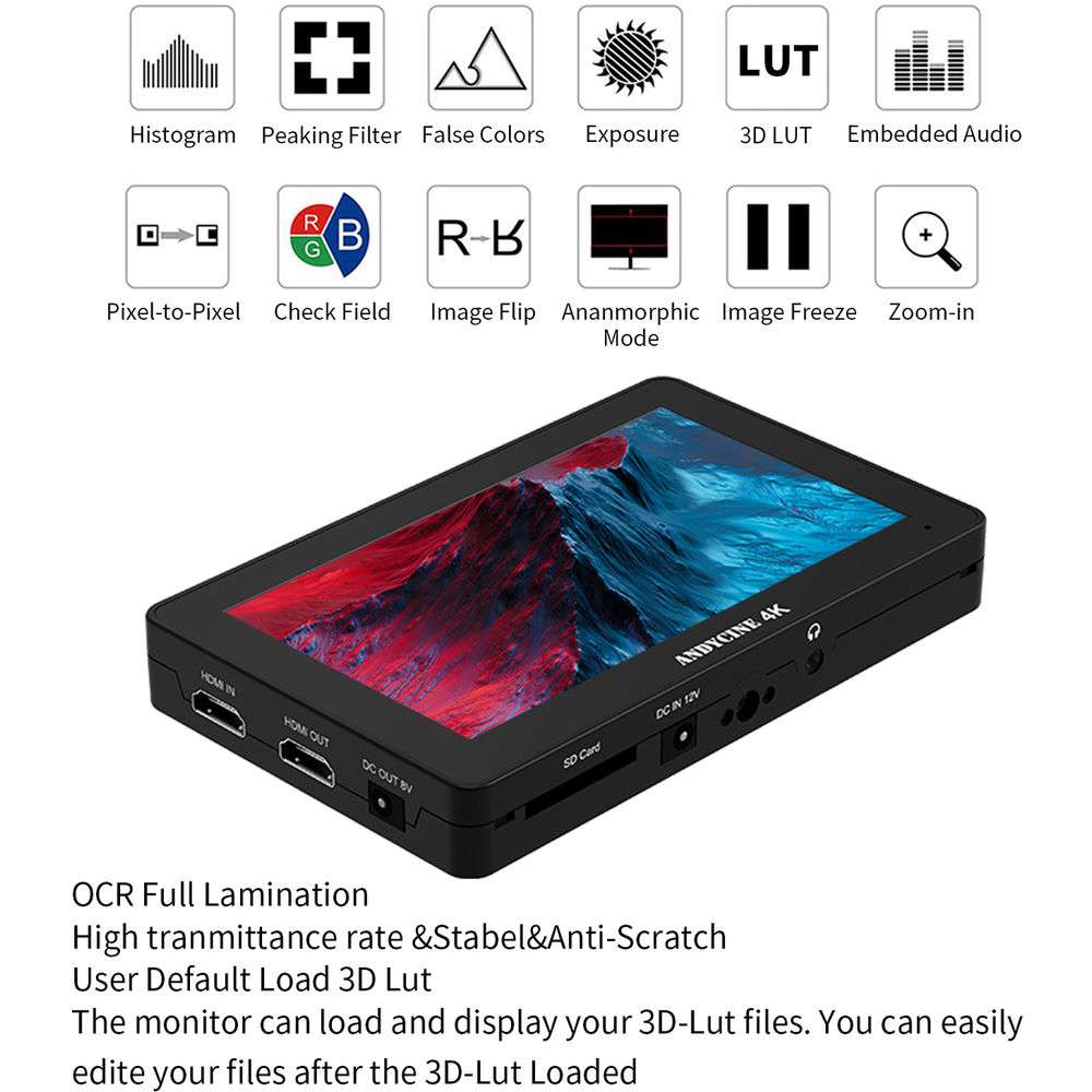 ANDYCINE A6 Plus 5.5" 4K HDMI In/Out 1920 X 1080 3D LUT Touchscreen Monitor