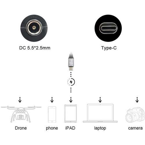 Bescor 100W USB-C Converter with D-Tap to DC Barrel Cable
