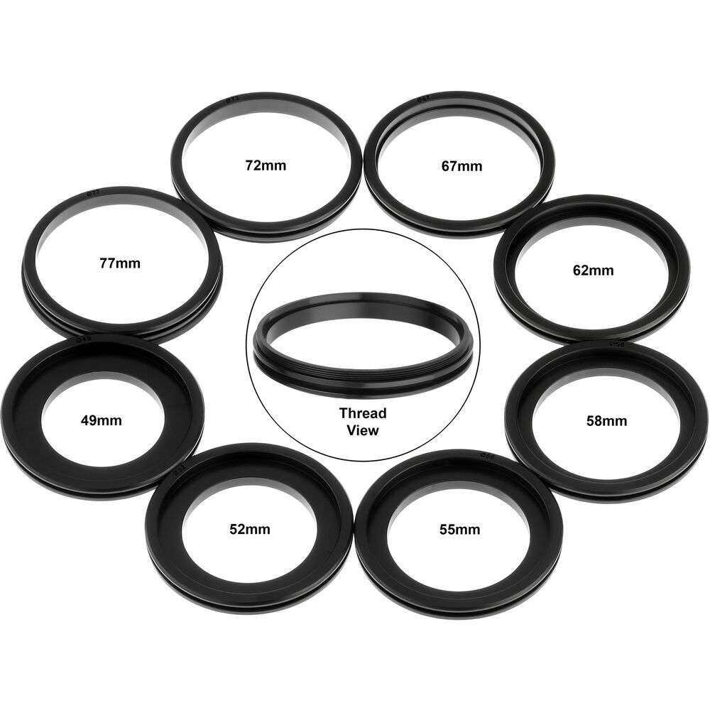 40.5mm/52mm/55mm/58mm/62mm/67mm/72mm/77mm Filter Threads (via Included Adapter Ring)