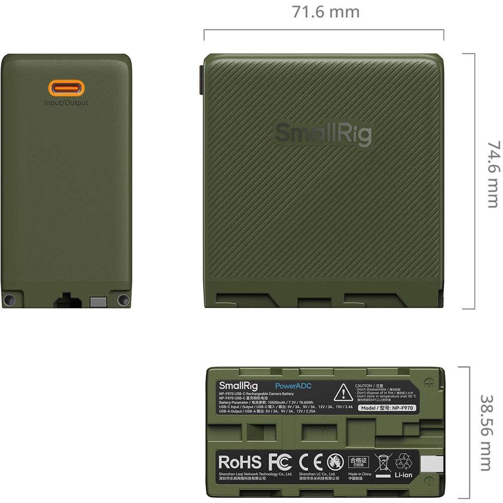 SmallRig L-Series/NP-F970 USB-C Rechargeable Camera Battery (Green)